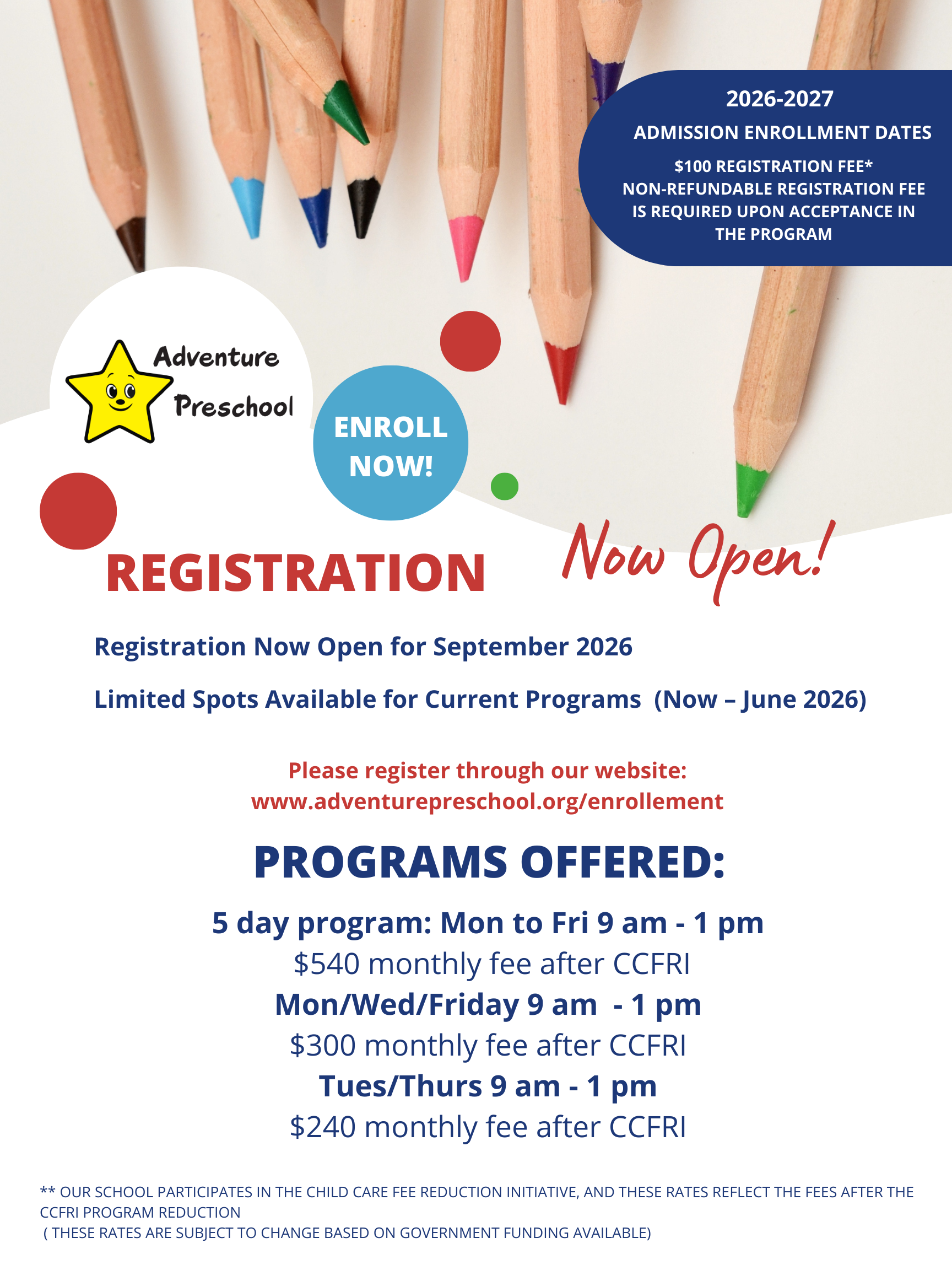 **Registration for the 2026-2027 year opens January 1st for current students and families, January 15th for new students
